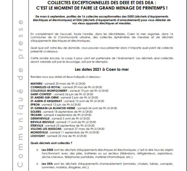 Collectes exceptionnelles des DEEE et DEA - Les dates 2021 à Caen la Mer